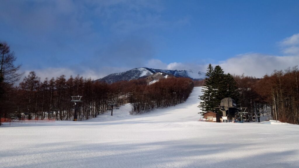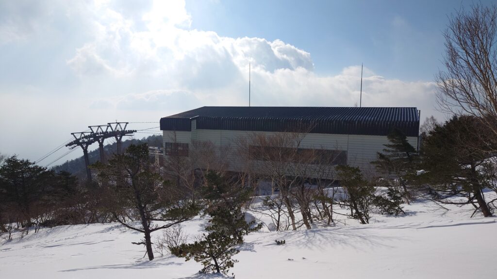 駐車場に着くと、登山と思われる車が既に結構な数。ザッと見渡す限りスキーはいません。圧倒的に登山が多数派。なんかアウエー感がありますな。肩身の狭い思いです。スキー場はかなり縮小営業してるようです。動いてないリフトや整備してないゲレンデがあります。以前はゴンドラもやってたはずだけど、今は夏場だけのようです。