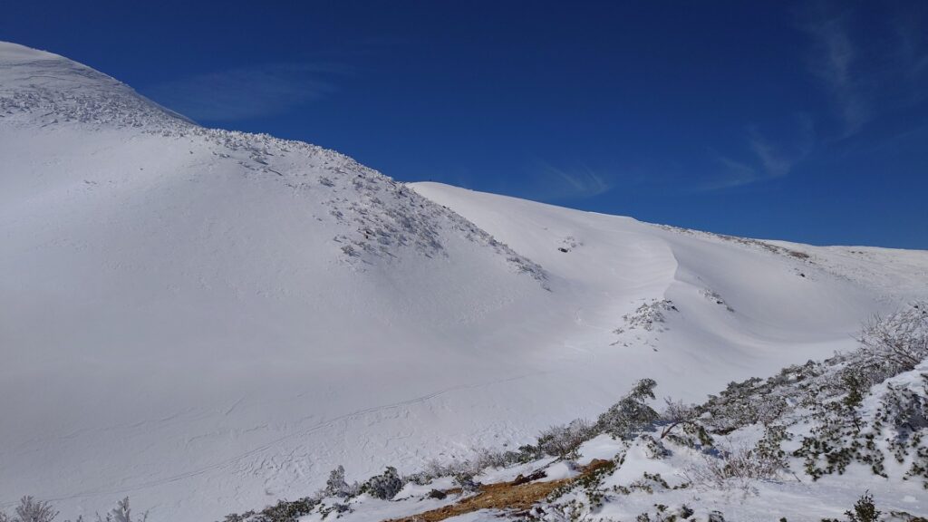 薬師岳から山頂へはなだらかな尾根