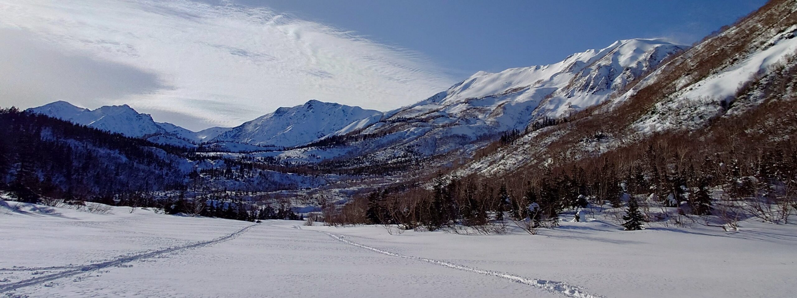 この下る道も山腹を巻くように水平に付けられてるので、もともと林道だったのかも。地図には国見平とありますが、このあたりの雰囲気が今日歩いたコースの中で一番よかったかな。ただ、何故だかここにきて曇る時間が多くなってきた…。空全体としては晴れ間が圧倒的に多いのに、ちょうど太陽のところに雲があって…