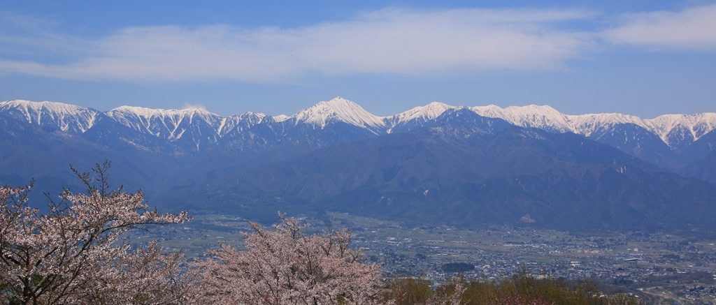 今年はふもとの桜が開花したタイミングで冷え込んで、しばらくオアズケ状態が続きます。で、一気に暖かくなったので、ふもとから山頂まで時間差なく開花。ふもとは散り始め、山頂は間もなく満開って感じ。晴れだけど北アルプスにだけ雲がかかる天気。花見は楽しめました。