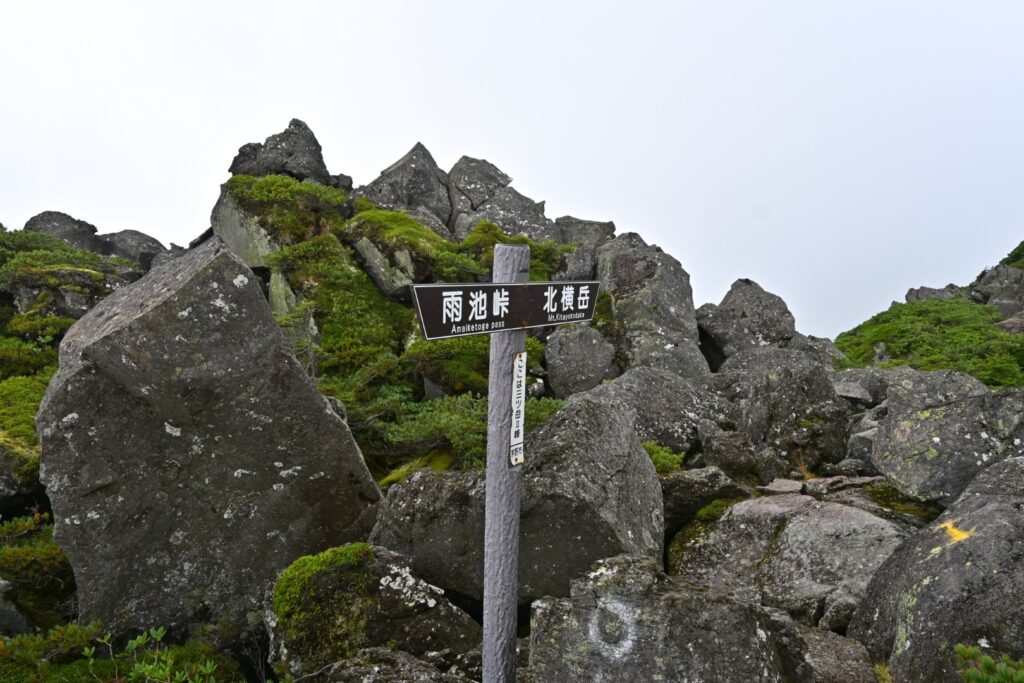 こんな天気なのでロープウェイで登ってくる人も少なそう。山頂駅付近も活気がなかった。ガスガスのなか坪庭へ。晴れてればロケーションの良い坪庭もガスガスでは…。北八ヶ岳といえばシラビソの深い森とコケ。展望は山頂付近のみというパターンが多い中、ここは歩き出しから坪庭で、少しの樹林帯歩きで北横岳へ。キタヤツにしては開けた部分が多いから好きです。