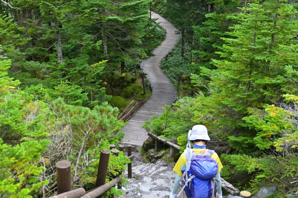 縞枯山荘から坪庭に立ち寄りつつロープウェイ山頂駅へ