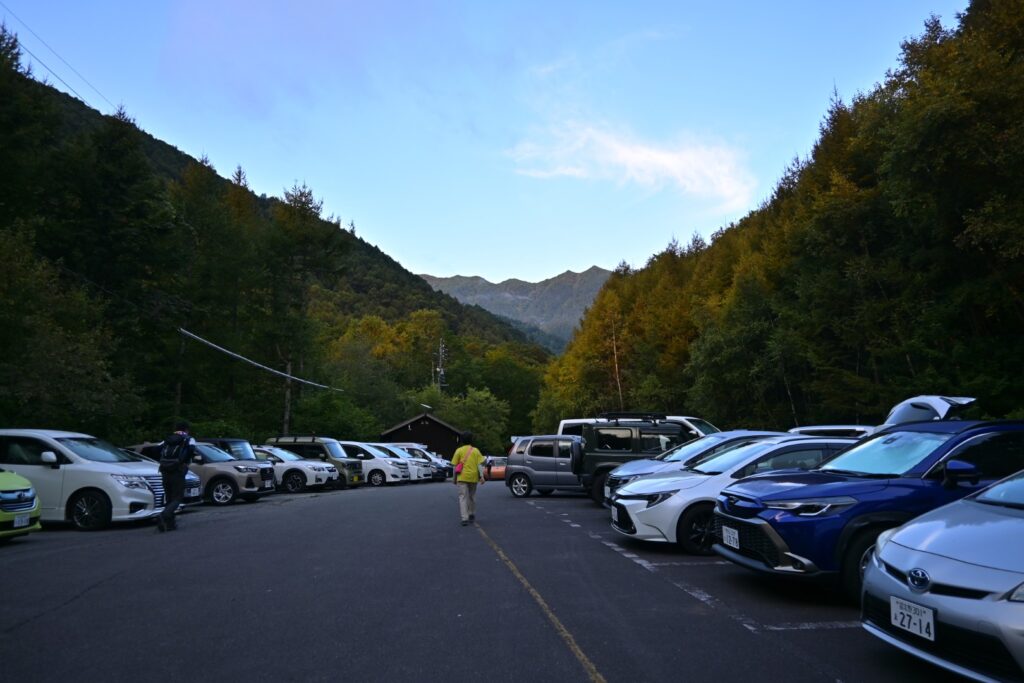 ウチから三股駐車場までは約30分。松本の職場より近い。しかし、今はいつ行っても満車になってて、朝行っても停められたもんじゃない。なので、近くて遠い蝶&常念なのであります。今回のように前々から予定して行く場合は前夜泊します。アホらしいんですけど確実です。今回も前夜9時半に三股へ。そしたら正規の枠は最後の1台でした(多分)。危ない危ない…