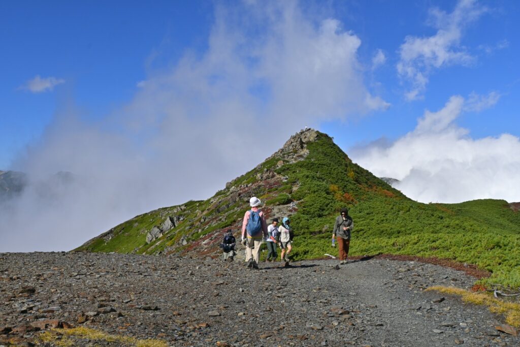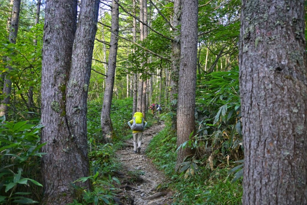 9時前にテン場を下り始めたので、三股を朝出た人たちとすれ違います。予報が下り坂なので、登ってくる人の数は控えめなのかなと思いました。そんな中でもテント装備の人も何名か。今夜は荒れる予報なので、大丈夫なのかと心配になりますね。そんなこんなで三股登山口に無事下山であります。登山口から駐車場までの林道歩きが、いつものことながら長く感じるのでありました。