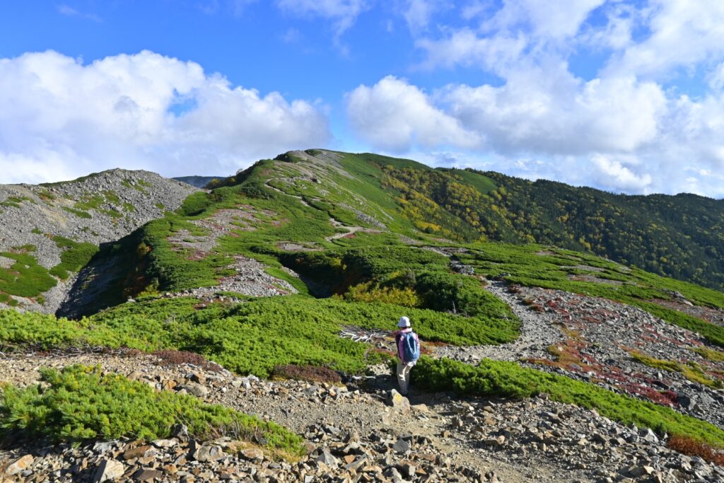 今日も2664.5m三角点で休憩します。なんだかお気に入りの場所になりました。ただ、今日は風が強いです。のんびり休憩できる感じではなかったですが、何とかタイムラプスになる時間だけは耐えました。帰りの瞑想の丘では陰っていた東斜面にもすっかり日が当たっています。やっぱり日が当たっていた方がいいですね~