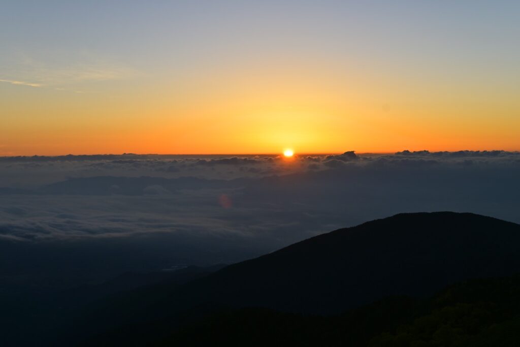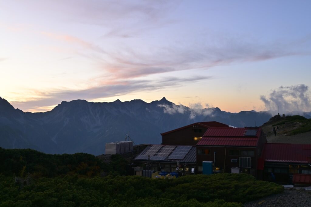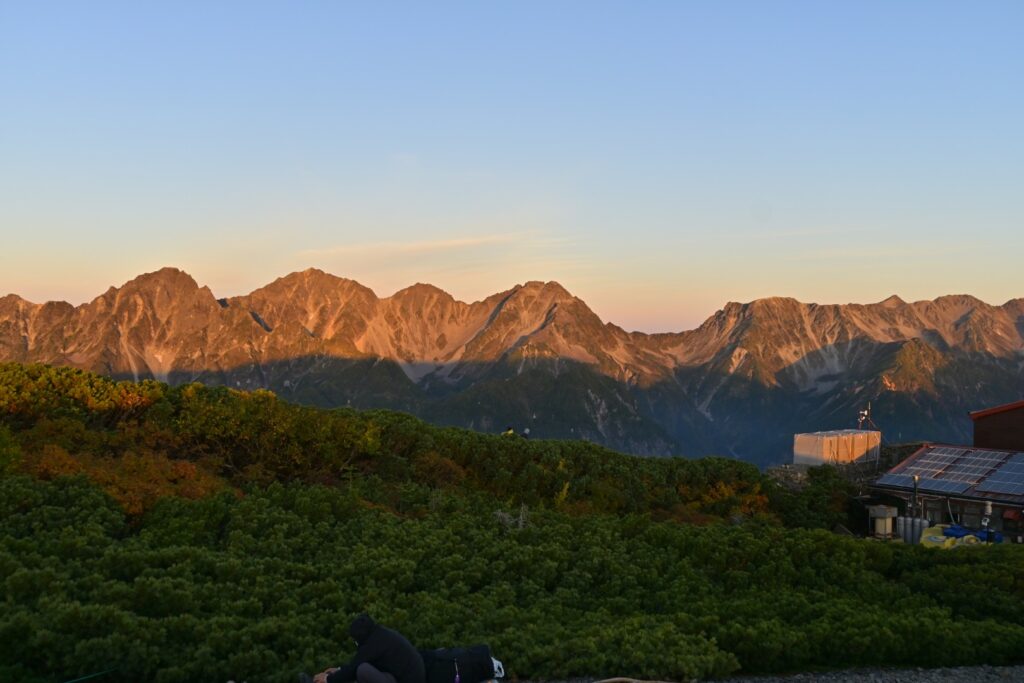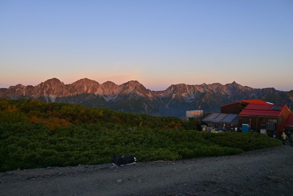 夜はそんなに寒くなかったです。下界の気温が16度とかですからね。まだまだ気温は秋になり切ってません。4時半ごろに目が覚めます。まだ真っ暗け。日の出は5時半くらいなので、今のうちに朝ごはんを食べておきます。テント泊の時はご来光を見ないことが多いです。でも、蝶ヶ岳のテン場はすぐそこからご来光を拝むことができます。ですので、一応見とこうかと。