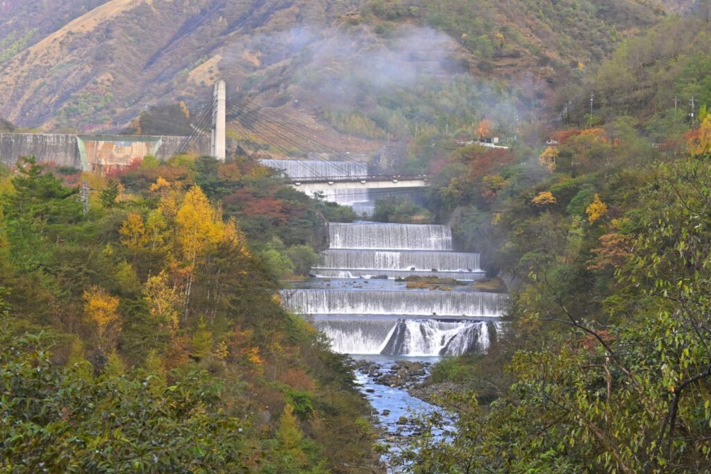親水公園の駐車場は30台駐車可となってますが、着いた直前に満車になったようです。進入路に路駐の列ができ始めてるとこでした。6時半でコレ、思っていたより人気の山のようですな。路駐の列に並べてもよかったけど、500mほど手前にある10台駐車可の駐車場がまだ空いてそうだったので、戻ってそこに駐車しました。余分に歩くことになるけど、まあいいか…って感じです。砂防ダムの連瀑を見れたのでヨシとします。