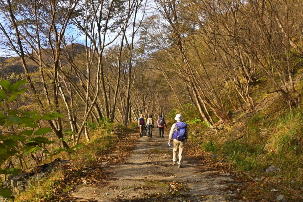 さらば中倉山~沢入山の稜線!また何時か来たいと思います。松木ジャンダルムというのはアルパインなのかな?一般路に毛が生えたくらいなら来てみたいとも思います。これから急な下り道。前後を行くみなさんハイペースで釣られちゃいました。膝をかばいうとつま先着地になるので、ふくらはぎが異様に疲れます。最後の4キロの車道歩きがかったるい…。かったるいけど、気分が充実感たっぷりでした。
