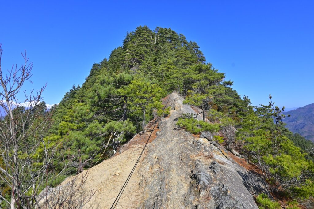 馬の背と呼ばれる岩稜と山頂へは岩場の登りあり
