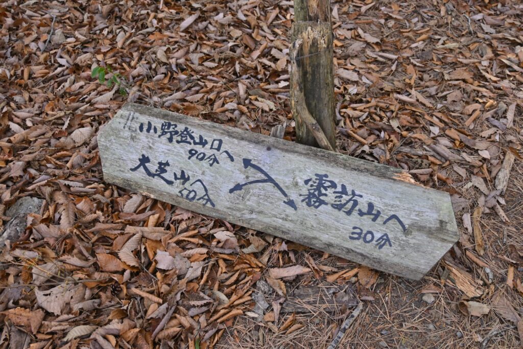 平日休みで近くてちょっと体動かせる山…。ま、長峰山&光城山がお手軽なんですけど、今日は冬型みたいで北アルプスが天気よくないかも?で、しばらく登ってない霧訪山に登ることにしました。せっかくなので、まだ登ってない小野からに。パッと見、周回コースに見えた北小野新道を絡めよう。芸はないけど、洞ヶ峰まで行って戻ってくることにしました。