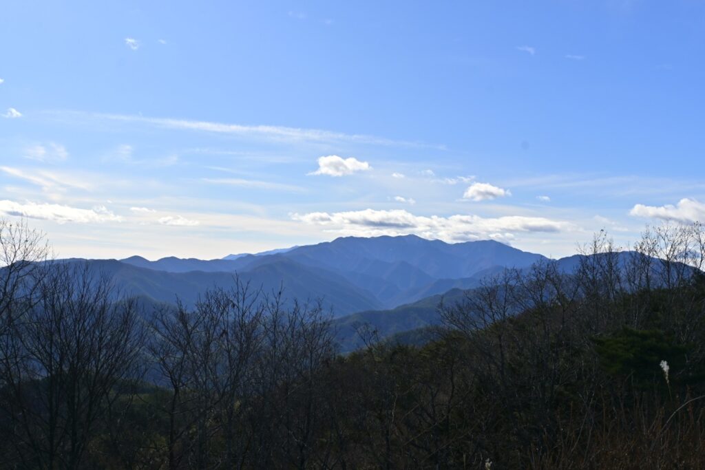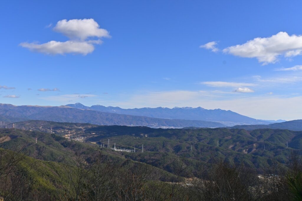 本日の最終目的地であります洞ヶ峰。ここは樹林に覆われてるけど真北のみ隙間があります。そこからは松本盆地を南側から一望することができます。基本は晴れなのですが、冬型ということで北アルプスの山々は雲に隠れてますね。唯一、大滝山だけ見えてるのかな。大滝山と蝶ヶ岳は重なってると思うけど、常念岳は雲がなければ見えてるはずです。しばらく休憩であります。