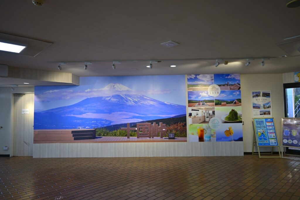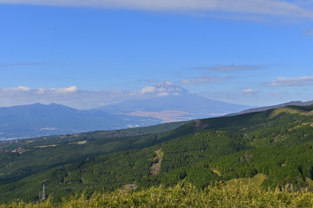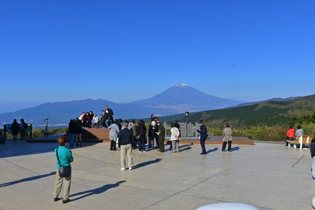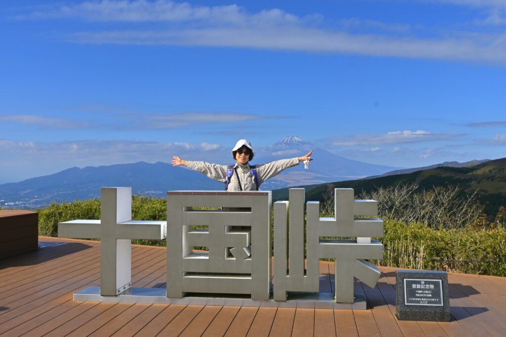 ケーブルカーを下りると十国峠。2022年8月に『パノラマテラス1059』が整備されたようです。最近〇〇テラスが流行ってて、あちこちにできてます。十国峠は昔の国名で「伊豆」「駿河」「遠江」「甲斐」「信濃」「相模」「武蔵」「上総」「下総」「安房」の十の国がここから見渡せたことに由来するとのこと。確かに展望は素晴らしいです。