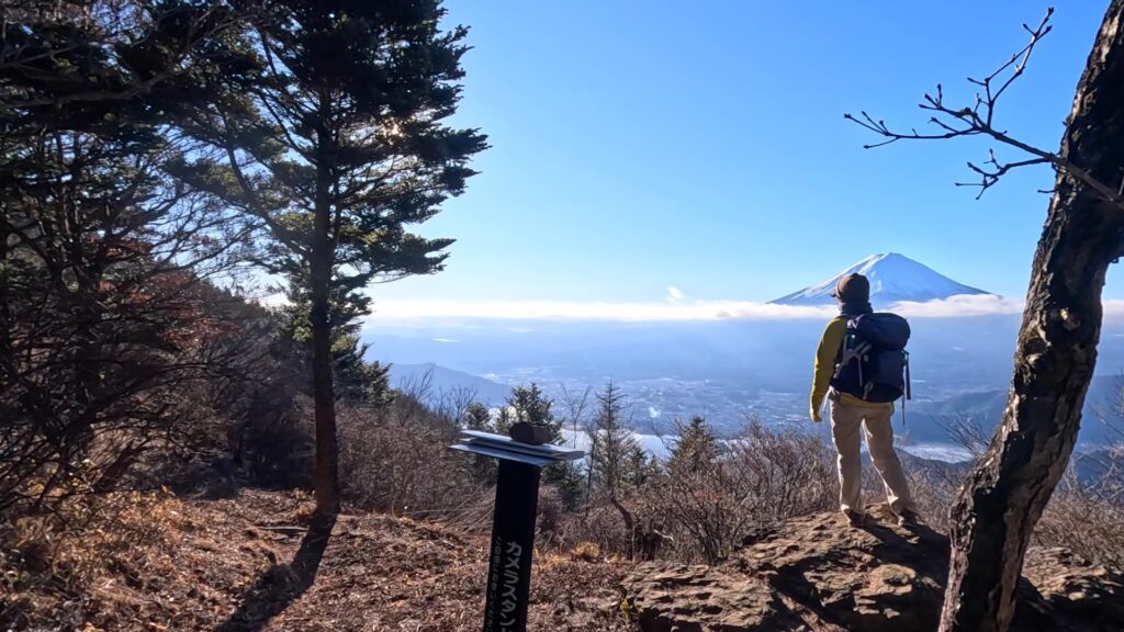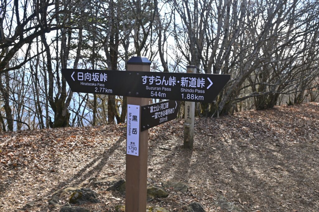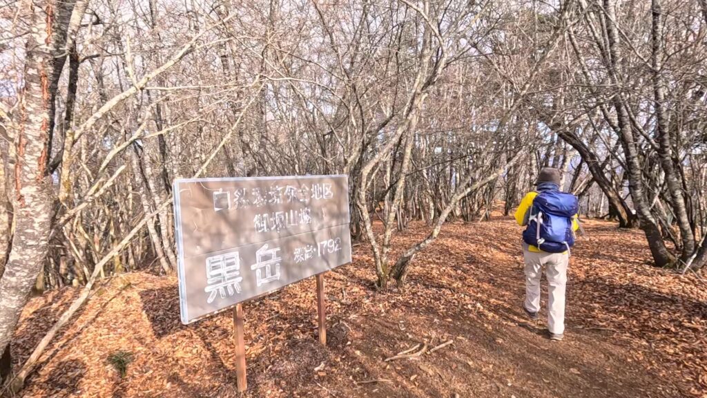 山名は黒岳だけど、通称は御坂黒岳ってことでいいのかな…?黒岳はあちらこちらにあるので、どこの黒岳かわかるように御坂を付けた…と。〇〇駒ヶ岳と同じ理屈かな。黒岳は地味だけど、ここ御坂山塊の最高峰です。日本三百名山にも選ばれています。一番高いから御坂山塊を代表しての三百名山なのかも…。黒岳の山頂は樹林に囲まれてて展望はありません。