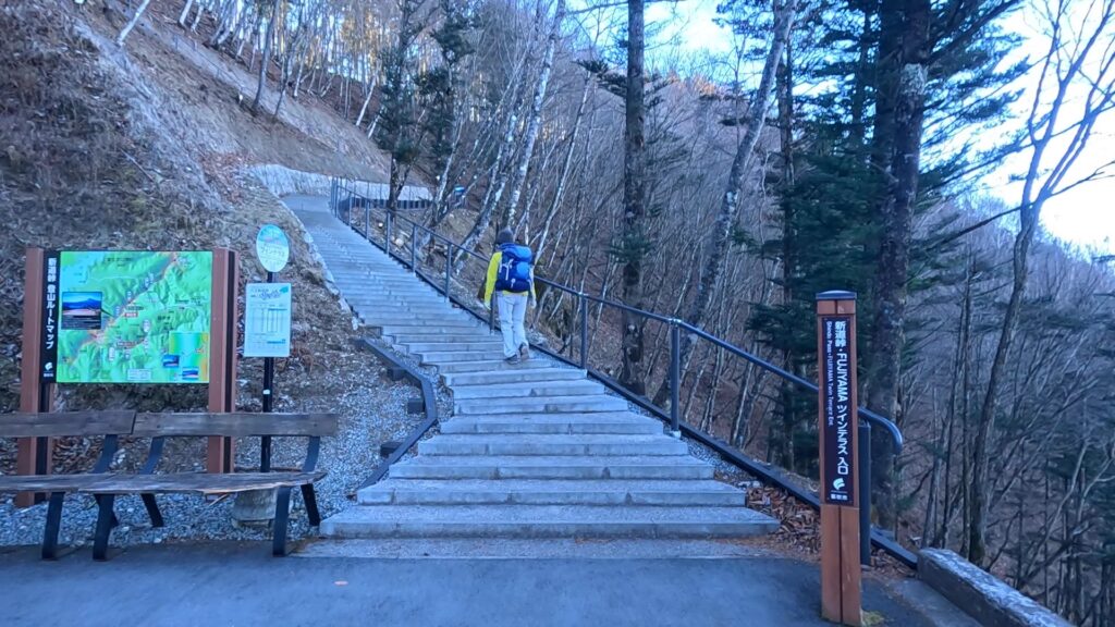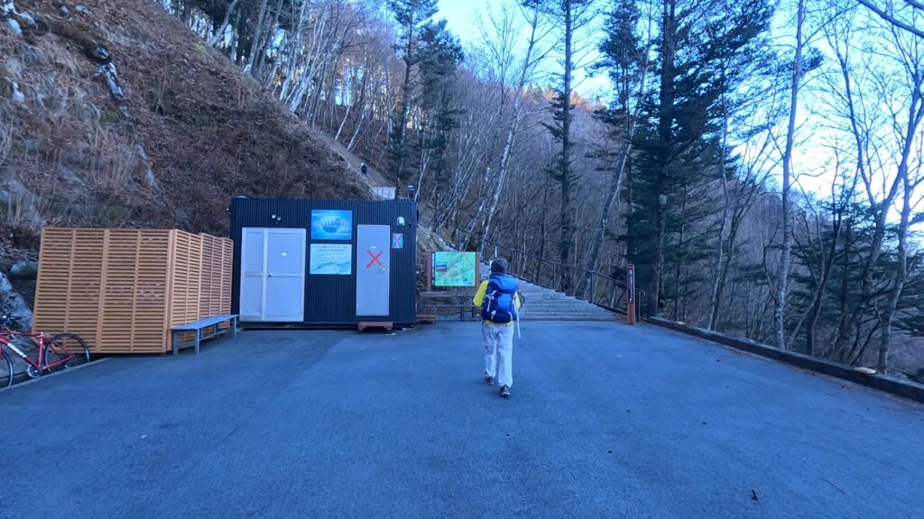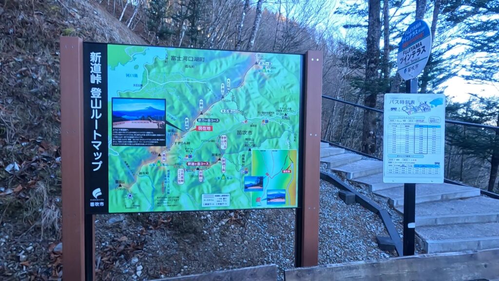 4月から11月はすずらんの里から新道峠の直下までシャトルバスが出ています。今は12月なので冬季運休中。車道を歩くことになるんですが、ゲートから2キロくらいなので大したことはないです。ちなみにバスは往復で1800円。いい値段しますね~。FUJIYAMAツインテラスを整備したので、バスで回収しようってことかな…?所要時間は片道10分ほど。始発が9:15と遅いので、登山には不向きです。ま、もともと観光客用でしょうしね。