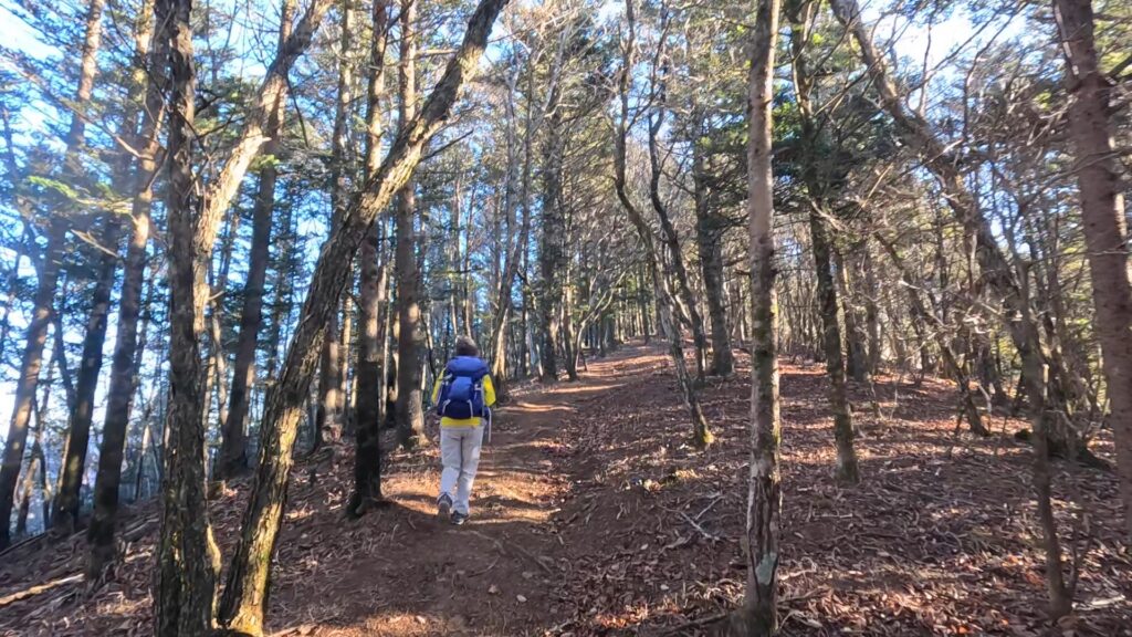 下山です。下山し始めてしばらくで、真上の空も一面雲で覆われてしまいます。雰囲気の良い林なので、最後まで陽射しがあってくれればよかったです。下山は日向坂峠の方をまわって、途中から車道に下りる道で。帰りにライブカメラで確認したら、あれから夕方までずっと富士山見えなかった模様です。富士山って晴れなのにそこだけ雲が…ってことが結構あるんですよね~。今日はラッキーでしたが。