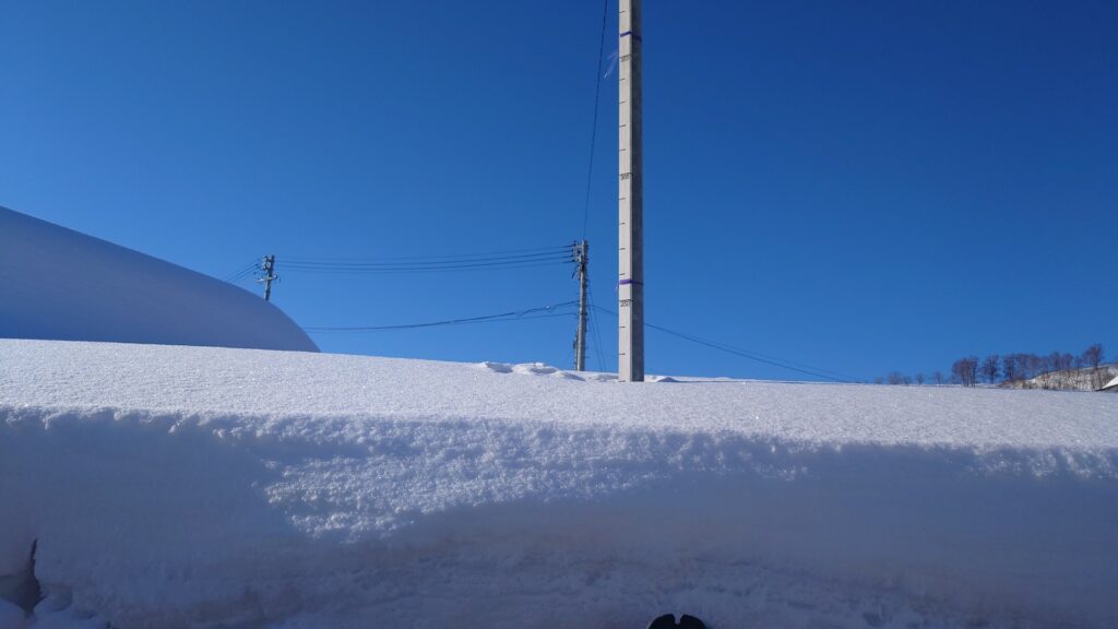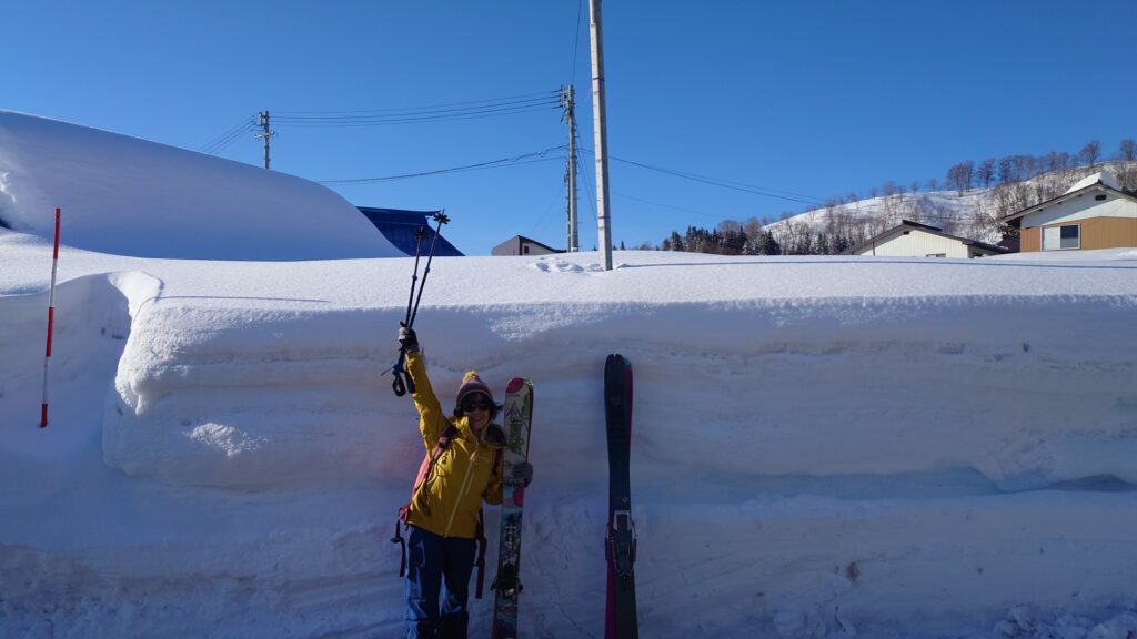 温井には8時前だったっけか…?忘れたけど、既に10数台の車が停まっていました。刺さってる定規によりますと、温井の雪壁の高さは220センチでした。去年ほどではないけど、まあまあ頑張ってますね。でも、寒の戻りの気配がないのが心配です。
