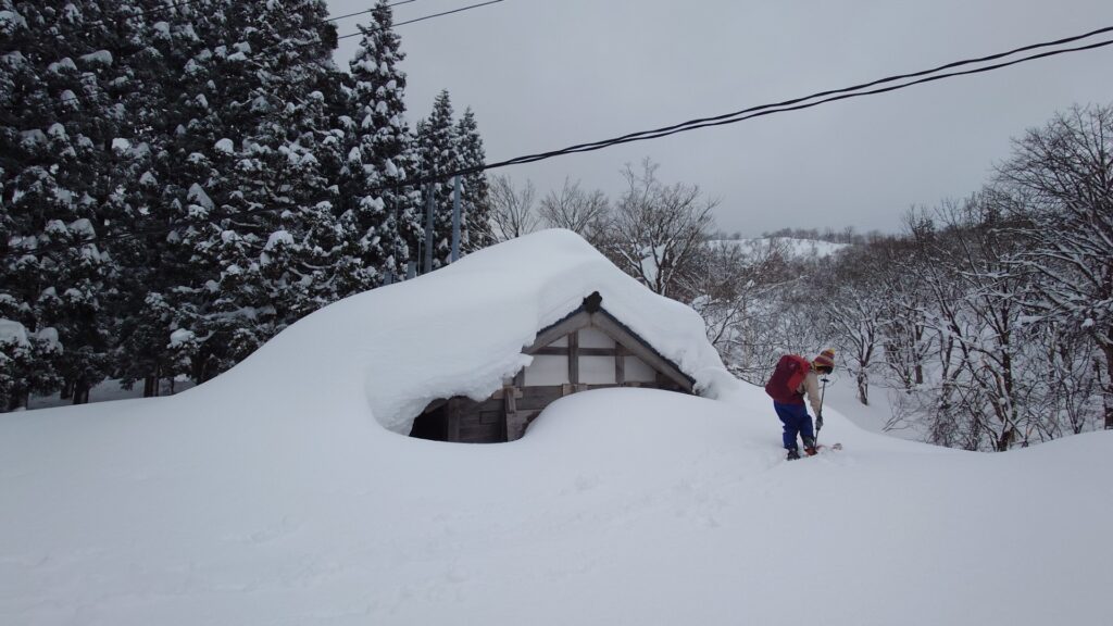 大峰峠のお堂の雪比べ